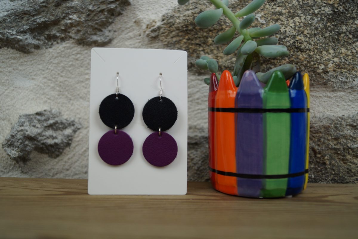 Boucles d’oreilles en forme de rond en cuir de veau.